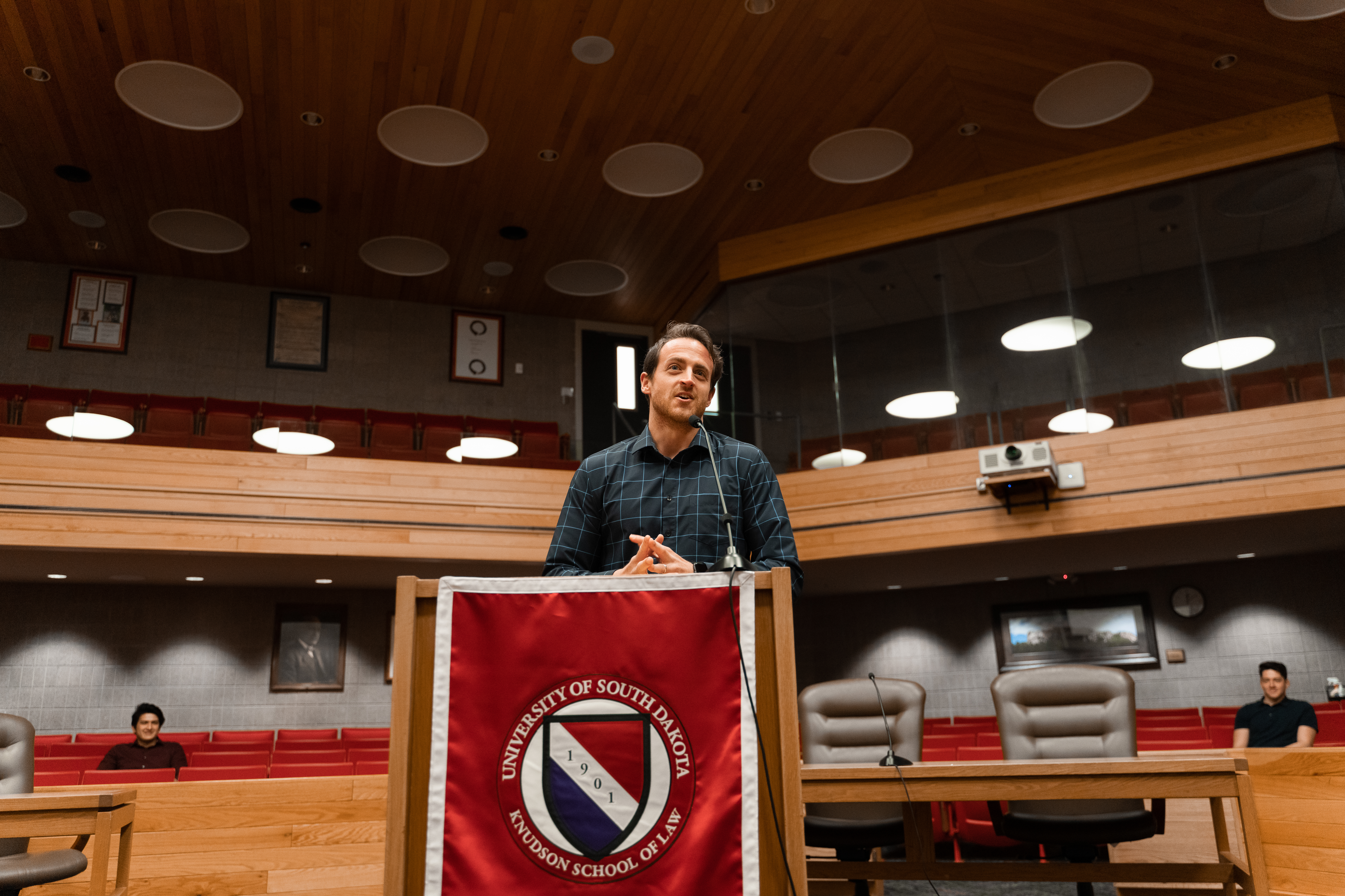 As a law student at USD, you'll receive a high-quality education that will set you up for success in the legal profession. Here you'll find that your legal education extends far beyond the textbook and exam preparation; you'll have opportunities to participate in national courtroom competitions, observe the South Dakota Supreme Court in action and gain early practice in law. Your education will be tailored to your unique interests and career aspirations, with eleven unique course tracks to choose from. And we've make our J.D. degree affordable, meaning you're getting a world-class education from a leading, flagship university while paying only a fraction of the tuition cost you might pay at other schools.